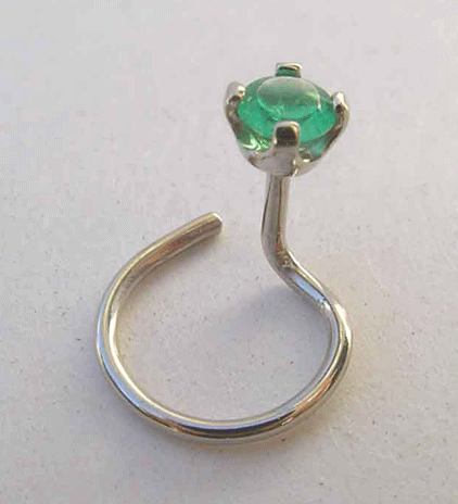 14K white gold and Emerald make this unique nose screw.