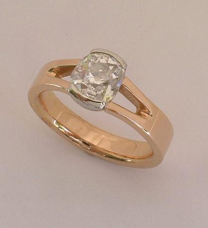 18K rose and white gold diamond ring.