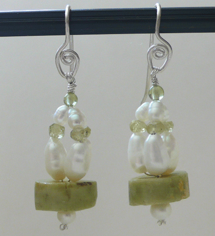 Peridot, Pearls, and Turquoise create these three ladies viewed in ceremony. Sterling silver.