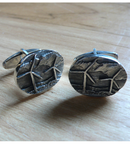 Carved wind turbine cufflinks, sterling silver.